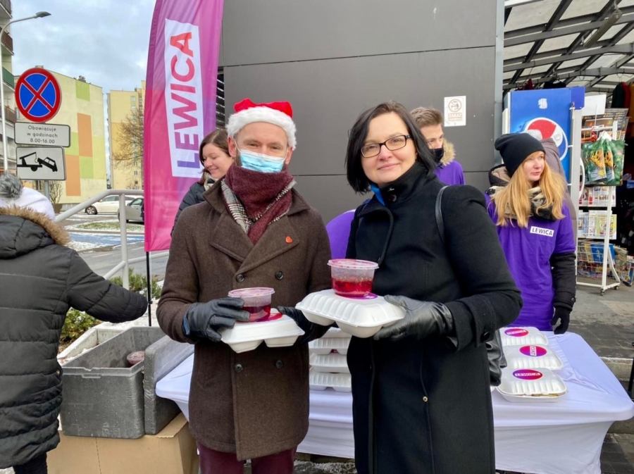 „To stało się już tradycją, że Lewica przed świętami wychodzi do ludzi i dzieli się posiłkiem. Będziemy rozdawać pierogi, kapustę z grochem, barszczyk świąteczny, ale również ciasto. W Polsce jest wiele osób ubogich, to ubóstwo wzrosło od 2019 roku i dziś to już 5% ludzi, którzy żyją w skrajnej biedzie. Wśród tych ludzi, aż 400 tysięcy to dzieci i niestety lepiej nie będzie, póki szaleć będzie drożyzna. To właśnie o drożyźnie mówi nam najwięcej osób, które przychodzą po te posiłki, skarżą się na rosnące ceny chleba, karpia, nawet kapusty kiszonej. My jesteśmy po to, żeby pomagać i to będziemy robić” – podkreśliła w Zduńskiej Woli posłanka Anita Sowińska.